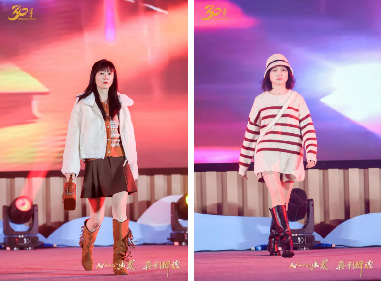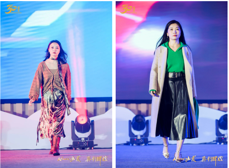 《书简舞》刚柔并济,典雅大气;《送你一朵小红花》现场互动,温暖阳光;走秀《冬季大秀 |“绒”冬》摇曳生姿,是服装的使者,是时尚的引领者,更是梦想的追求者;年轻一代的采访感人肺腑,他们将携卅载传承,续写新篇章;朗诵《华瑞扬帆正当时,争做时代追梦人》热血昂扬,歌曲《有梦就要闯》催人奋进,让奋斗在秋日激情的旋律中奏响!神秘小嘉宾带来的歌曲《明天会更好》,将庆典气氛推向高潮。